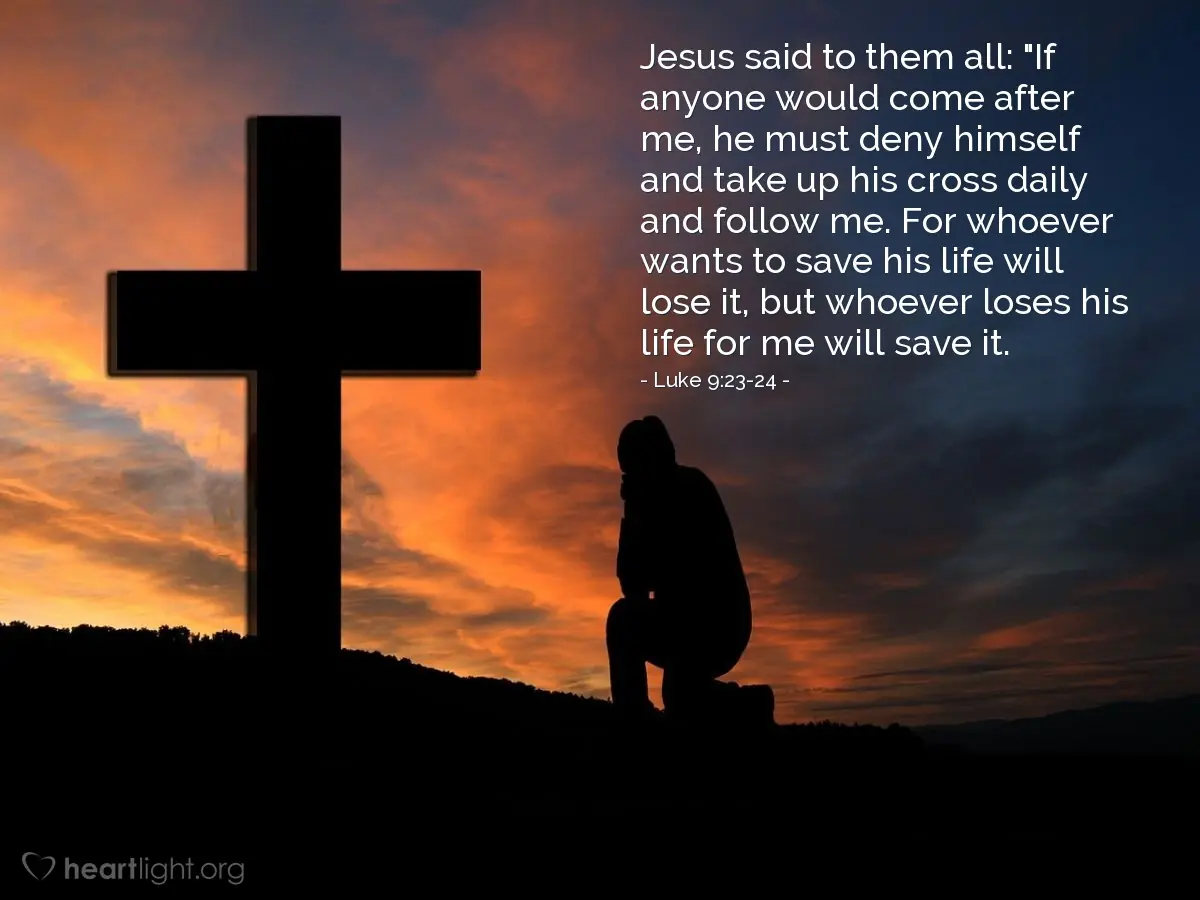 Jesus said to them all: "If anyone would come after me, he must deny himself and take up his cross daily and follow me. For whoever wants to save his life will lose it, but whoever loses his life for me will save it."—Luke 9:23-24Thoughts on Today's Verse..."I've just got to get away and find myself